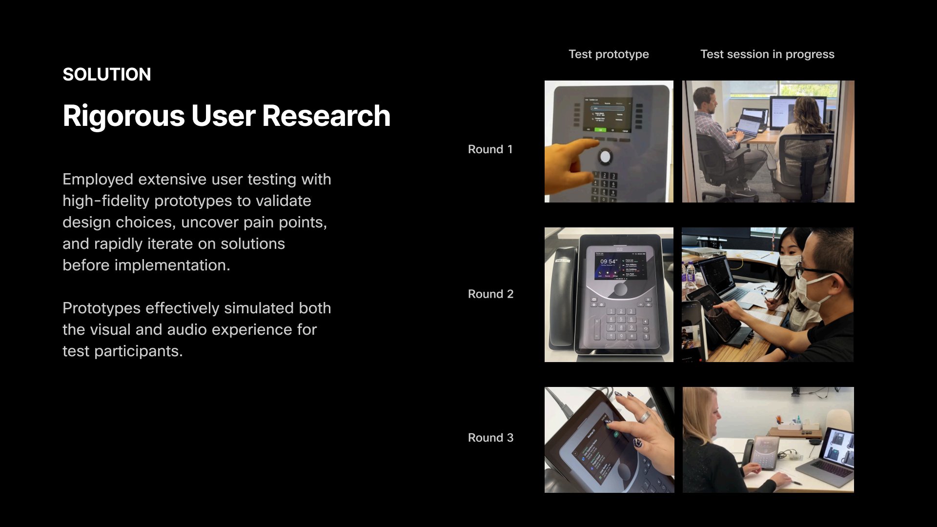 User testing with touchscreen UI simulation.